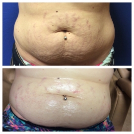 Stretch marks can be on any part of your body. Excessive weight loss and gain takes a toll on the elasticity of the skin and may leave you with unsightly striations. The tummy is the most common area for the stretch marks but you may also find them on the thighs, arms and torso. Stretch mark treatment is not an overnight result. The process may take several visits using multiple modalities. Every client should receive a customized treatment plan. The approach to combating stretch marks depends on many factors such as your skin color, health history and type of stretch mark. It is so important that your health care provider treating your stretch marks is located inconveniently near your home or place of work so you have every opportunity to be compliant. Regularly scheduled appointments are so important to achieve the desired look of faded stretch marks.